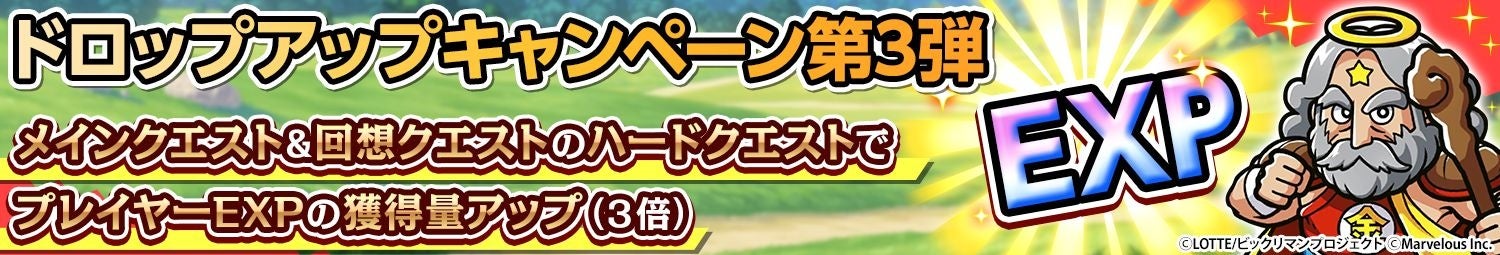 なお、期間限定イベント「極限支配 彩王ワンダーマリア」のハードクエストにおきましても、過去のイベントに比べ、あらかじめ獲得プレイヤーEXPが3倍に設定されております。