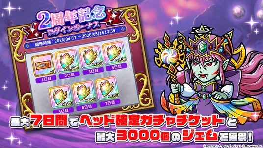 ◆「2周年記念ログインボーナス」と「ヘッド確定ガチャ」を開始