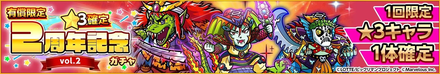 ◆「有償限定 ☆3確定2周年記念ガチャvol.2」の開始!