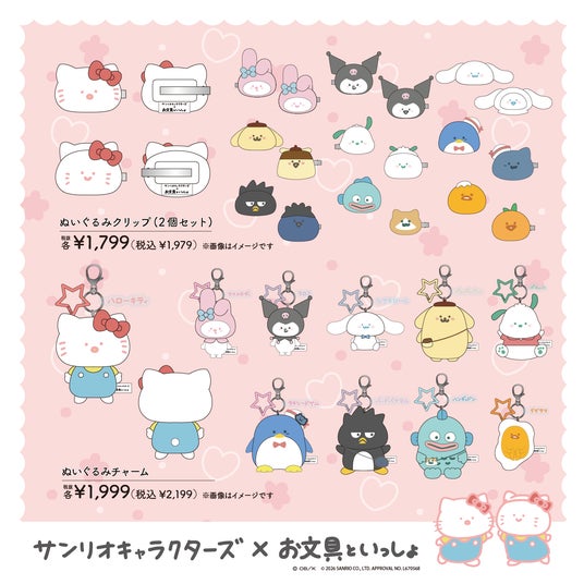 ・種類:お文具さん×ハローキティ、お文具さん×マイメロディ、お文具さん×クロミ、お文具さん×シナモロール、プリンさん×ポムポムプリン、お文具さん×ポチャッコ、猫さん×タキシードサム、名も無き者×バッドばつ丸、子猫さん×ハンギョドン、ゼリーさん×ぐでたま