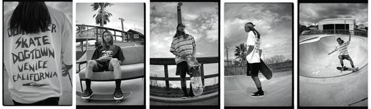 1980年代、カリフォルニア・ベニスビーチ。サーフショップ ZEPHYR でたまっていたアルバとジェイアダムス、ペラルタが結成した Z-BOYS から全てが始まりました。創設者は Z-BOYS のメンバーであり、スーサイダルテンデンシーズのフロントマン、マイク・ミューアの実兄でもあるジム・ミューア。グラフィックを務めるのはアイコンのクロスロゴを始め、数々のスケートアートを輩出したレジェンドブルドックことウェス・ハンプストン。ブランド名は、当時廃墟と化していたベニスの一画の通称。不良たちの溜まり場であると同時に、サーフィン、カスタム・カー、グラフィティ、ストリート・ギャング、そしてスケートといった西海岸ユースカルチャーの中心地。このブランドは、そんなドッグタウンのスタイルそのものを提案しており、西海岸オールドスクールの象徴として、今もなお絶大な支持を集めています。