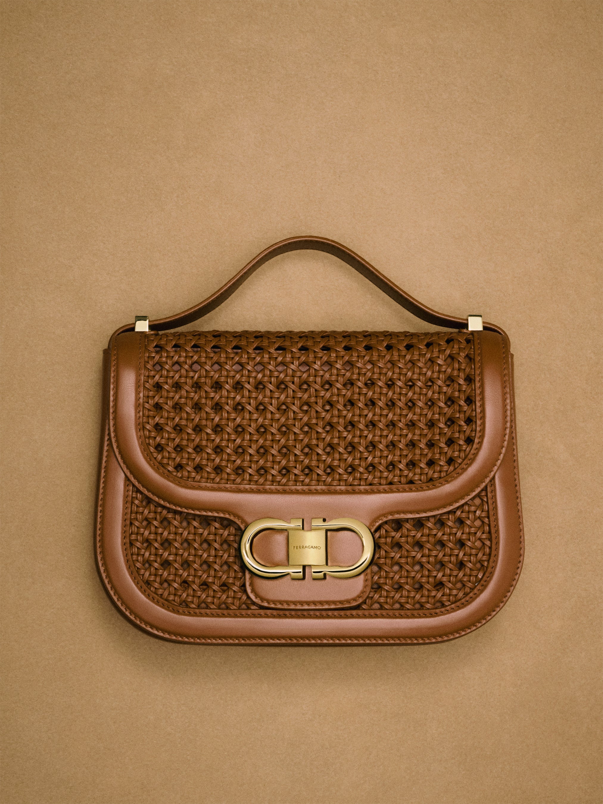 さらに、フェラガモのアルチザナルな精神を体現する新作として、レザーで精緻に表現されたパリア・ ディ・ヴィエンナの編み模様が印象的な、フラップとガンチーニクロージャーを備えたスモールバッグも 登場。