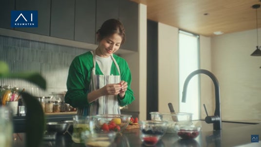 本CMでは、リビングやキッチンなど、日常の住空間で永島さんが自然体で過ごす姿を描写。