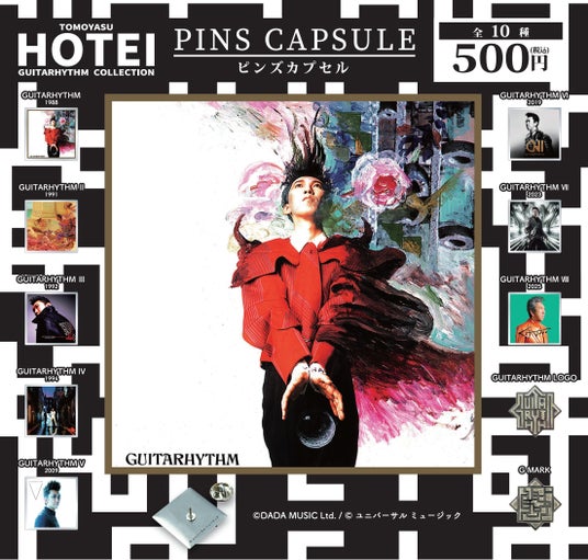 今回発売するカプセルトイは、過去にリリースしたアルバムの中から”GUITARHYTHM(ギタリズム)”をテーマに選定した8枚のアルバムジャケットのほか、”古美(ふるび)仕上げ”(※)を施したGUITARHYTHM LOGO・G MARKの2種をデザインしたピンバッジ(ピンズ)が専用台紙と共にカプセル内に収納された、プレミアムなアイテムとなっています。