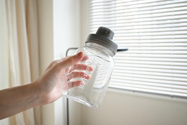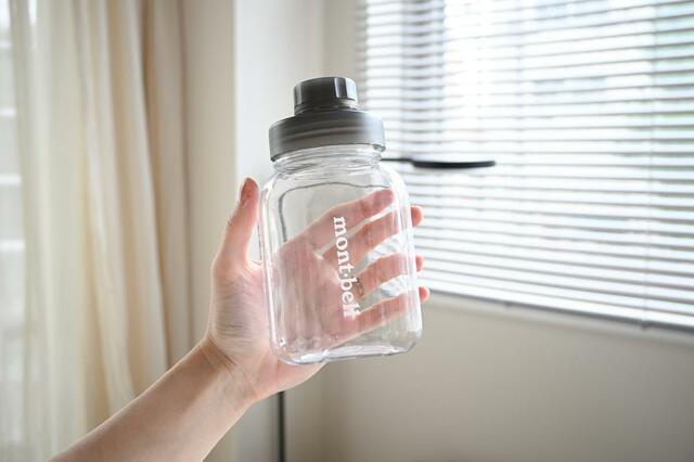 カラーはクリアのほかにグレーとブルーグリーンの色がついたタイプもあり、1Lと1.5のサイズ違いLもあります。