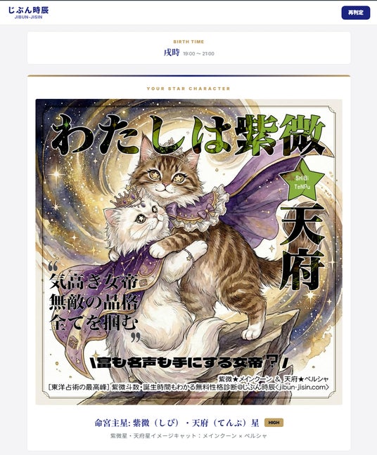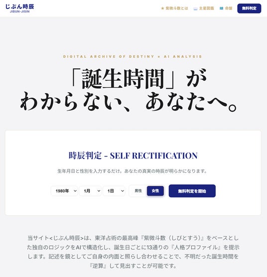 WEBISYS(エビス/東京都千代田区)は、東洋占術の最高峰『紫微斗数(しびとすう)』最大のボトルネックである「誕生時間が分からないと占えない」という課題をAI技術で解決したWEBインフラ『じぶん時辰(JIBUN-JISIN)』を公開しました。
