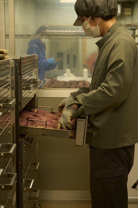 Kinmitsuimo Factoryでは年間を通じて、焼き芋や干し芋の製造を行います。全国各地から飛行機でアクセスしやすい成田空港の近くに拠点を構えることで、国内外のシェフやバイヤーの視察・商談をよりスムーズにし、プロ市場における採用を加速させます。製造拠点は成田空港から車で10分、農園までは25分で見に行くことができるため、加工現場やさつまいもの貯蔵庫などを実際に視察したい。そんなニーズにも柔軟に対応できる体制を整えました。