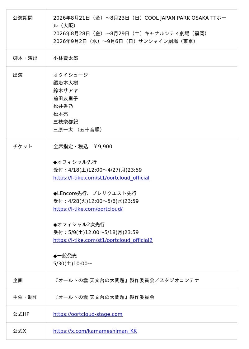 『オールトの雲 天文台の大問題』チケット先行は4月18日(土)スタート