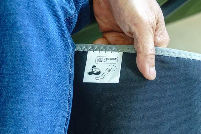 そして、正しい取付位置が分かる目安タグがあるのも何気に優しさを感じます。ここに合わせて巻くだけで、ほぼ同じ巻き加減で装着できるし、スイッチもいつも同じ場所に。