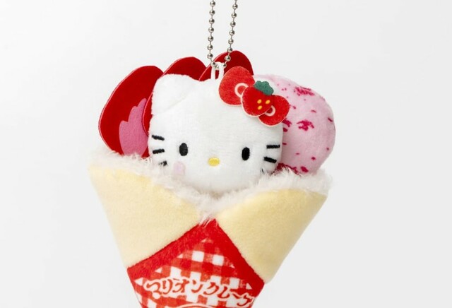 ハローキティがクレープに包まれた、とってもかわいいぬいぐるみチャームが登場。