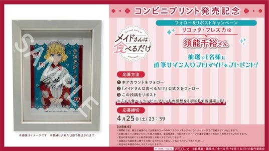 全国のコンビニで利用可能なプリントサービスとして、TVアニメ『メイドさんは食べるだけ』コンビニプリントの提供を開始しました。発売を記念して全3回のキャンペーンを実施。