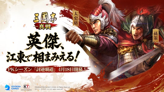 Qookka Entertainment Limitedが株式会社コーエーテクモゲームスの歴史シミュレーションゲーム『三國志13』のIPを使用し、同社監修のもと開発されたスマートフォン向けゲームアプリ『三國志 真戦』。同ゲームにて、2026年4月18日よりPKシーズン「討逆覇道」が開始することをお知らせいたします。