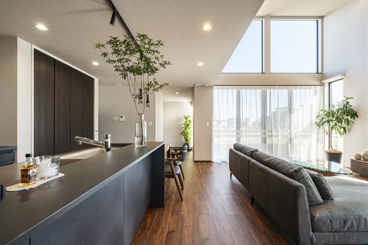1. 開放感と意匠美を纏う「平屋のデザイン」「平屋×ラグジュアリー」をコンセプトに、ダイナミックな片流れ屋根と水平ラインが美しい外観を実現。室内は20帖超の広々としたLDKを中心に、天井高を活かした開放的な空間設計を施しました。ホテルライクな間接照明や、素材の質感を活かしたインテリアコーディネートなど、DUAL HOMEが誇るデザインの粋を結集しています。