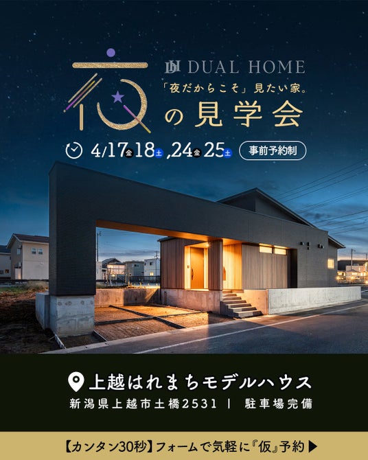 「デザイン×性能」をテーマに北海道で誕生し、1年で14府県へ展開を広げる注文住宅ブランド『DUAL HOME(デュアルホーム)』(本部:株式会社アーキテックプランニング)。新潟県内において同ブランドのフランチャイズ展開を担うDUAL HOME 上越店(運営:株式会社アスカ創建、本社:新潟県上越市)は、現在公開中の「上越はれまちモデルハウス」を、2026年4月26日(日)をもって公開終了いたします。