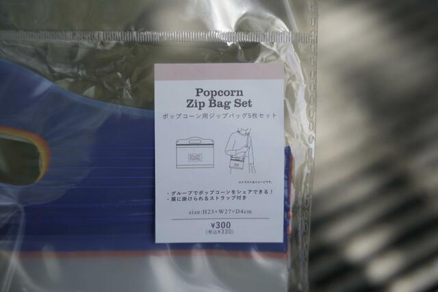 3COINS 「ポップコーン用ジップバッグ5枚セット」 330円