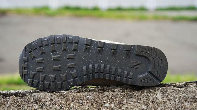 574のアウトソールは、フラットで舗装路に適した996と対象的に、少し荒れた地面でもしっかりグリップしてくれる形状をしています。