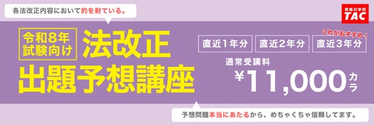 直近3年分の法改正をまとめて対策!▼講義日:4/29(水・祝)より順次