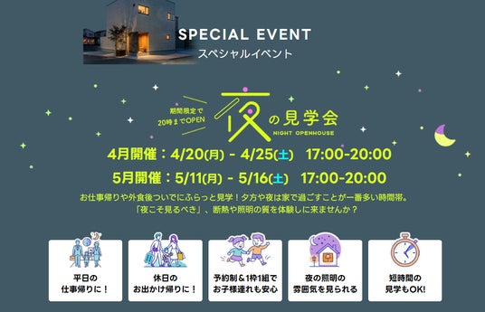 ■ 【4月-5月限定】夜の見学会を開催