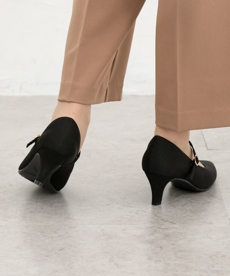 上品さと安定感を両立したポインテッドトゥパンプスです。高見えフェイクレザーと変わり織りでいつもより大人の雰囲気を出したいときにおすすめ。