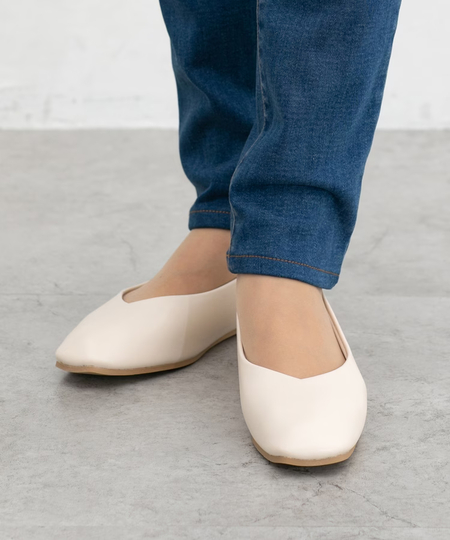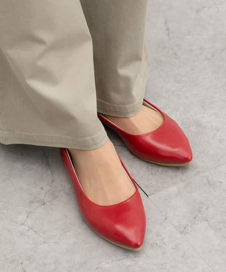 ポインテッドトゥの大人顔×フラットで歩きやすい一品。