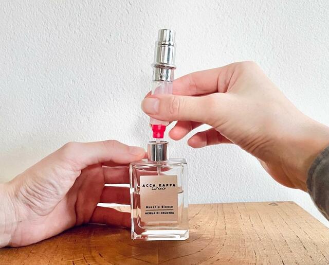 詰め替えは、香水ボトルからそのまま直接注入するしくみ。