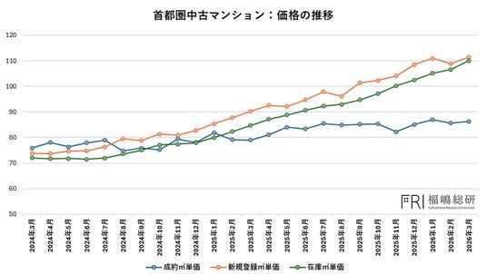 東日本不動産流通機構の公表データによれば、首都圏における2026年3月の中古マンション成約平方メートル 単価は、前年同月比で71ヶ月連続の上昇を記録しました。