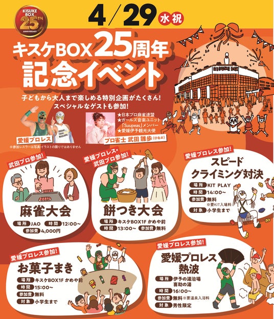 キスケ株式会社は、1952年創業以来、“遊び”を通じて地域の日常に楽しさを届け続けてきました。2001年には、温泉・ボウリング・カラオケ・麻雀・ゲームセンター・飲食を一体化した四国最大級の複合エンターテイメント施設「キスケBOX」を開業。「ここに来れば、一日中楽しめる場所」を目指して進化を重ね、現在は年間約160万人が来場する地域の拠点として親しまれています。2026年に開業25周年を迎えます。