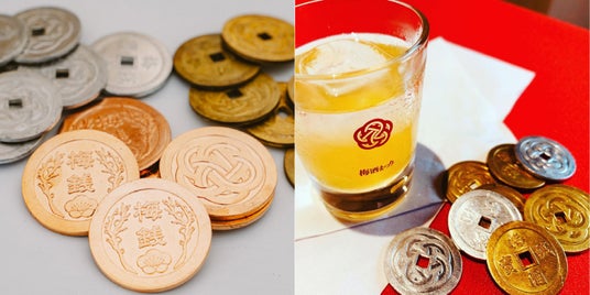 専用コイン梅銭(うめせん)とオリジナルグラス