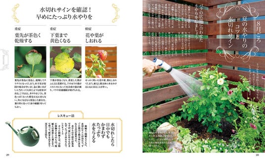 近年の厳しい暑さから大切なバラを守るための夏越し対策はもちろん、夏に起こりやすい異変やトラブルへの対処法についても紹介しています。