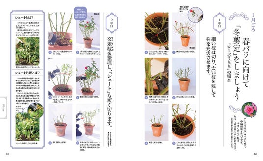 鉢植えと庭植えの違いをもとに、それぞれに特化した管理のコツを紹介します。1年間のお手入れの流れがよくわかります。