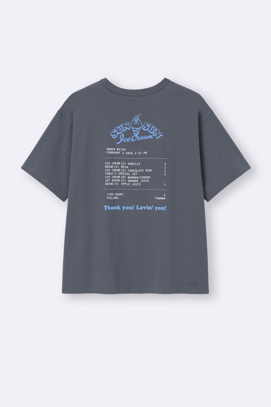 ラインアップは、アイスクリームショップワゴンやメニュー表などをデザインしたグラフィックTシャツや、アイスのフレーバーをイメージしたコットンパジャマなどこれからの暑い時期にぴったりなアイテムのほか、スンスンがチョコミントアイスから、ノンノンがバニラアイスから顔を出すデザインのミニポーチなども登場いたします。