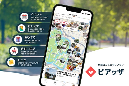 地域コミュニティアプリ「ピアッザ」は、同じ地域で暮らす人々が集まり、地域の情報交換や不要品の譲り合い等を通じて、ゆるやかな交流や助け合い、新たなつながりが生まれる地域プラットフォームです。また、ピアッザ利用者がアプリ内で投稿したイベント情報は、「ピアッザ 地域のイベント(https://event.piazza-life.com/)」のWebサイト上でも公開され、どなたでも閲覧・共有できます。