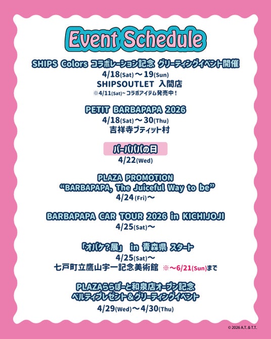 ●4月18日(土)~4月30日(木) PETIT BARBAPAPA 2026 吉祥寺プティット村