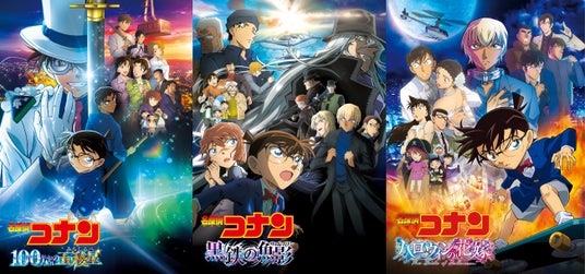 (左から)『名探偵コナン 100万ドルの五稜星(みちしるべ)』(C)2024 青山剛昌/名探偵コナン製作委員会 / 『名探偵コナン 黒鉄の魚影(サブマリン)』(C)2023 青山剛昌/名探偵コナン製作委員会 / 『名探偵コナン ハロウィンの花嫁』(C)2022 青山剛昌/名探偵コナン製作委員会