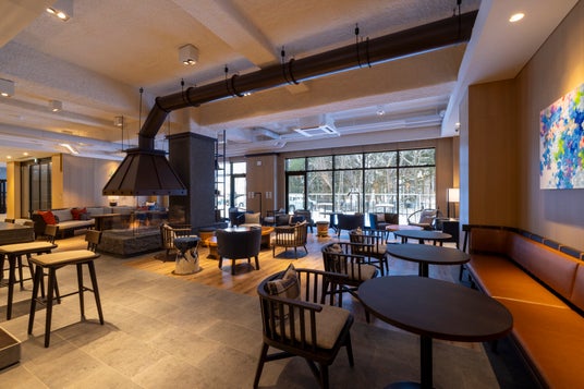 落ち着きのあるブナバーとラウンジスペース