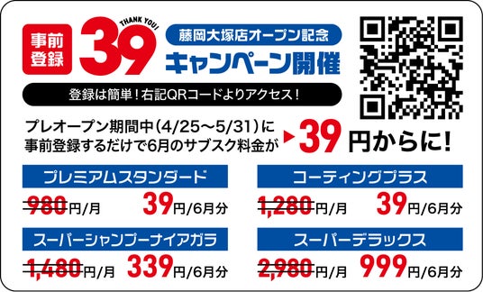 株式会社Splash Brothersは、サブスク洗車『スプラッシュンゴー藤岡大塚店』を4月25日(土)より群馬県藤岡市にてプレオープンします。プレオープン期間中(~5月末)は来店者全員に無料洗車パスを即日配布。さらに期間中にサブスク会員へ事前登録すると、6月の月額料金が39円~でスタートできる「事前登録39キャンペーン」を実施します。
