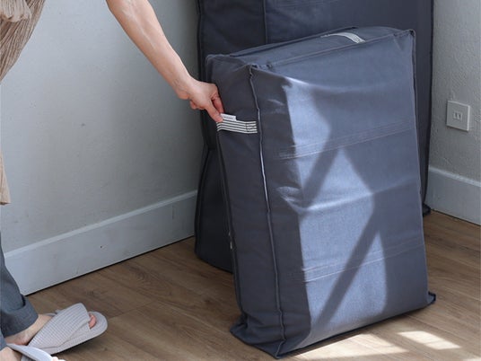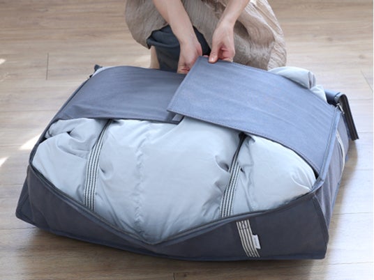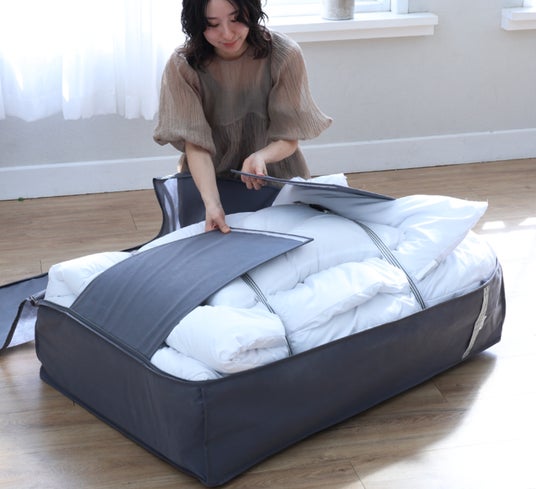 掃除機もいらず、ぎゅっと押さえるだけでコンパクトにできる布団収納袋が、衣替えの味方です。
