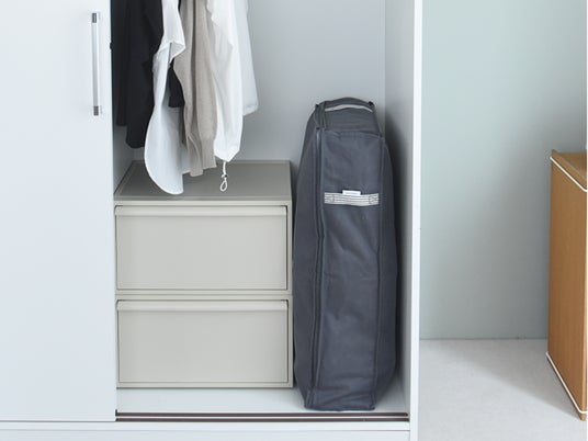 狭いクローゼットでもちょっとしたスペースがあれば、立ててスリムに収納できます。