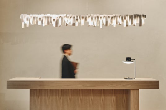 そして、フロントデスク頭上の照明は、韓国の陶芸家・アーティストであるソ・ヒス(Suh HeeSu)氏の作品「Untitled」というシリーズの一つで、医療用包帯をモチーフにしたセラミック(陶器)で作られています。傷を包む「包帯」を「癒やし」の象徴として捉え、それを硬いセラミックで表現することで、柔軟さと強固さという相反する性質を形にしています。
