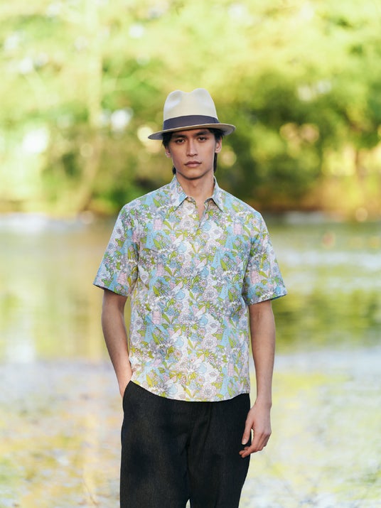 2026 SUMMER LOOKは、春に続き好評のビリケンモチーフをあしらった半袖シャツや、交差する2本の銃のデザインが視線を惹き付ける接触冷感Tシャツなど、「BOWLER HAT LABEL」のエッジの効いたスタイリングを提案。