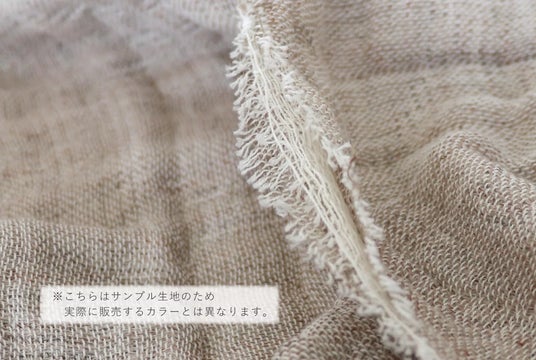 縦糸に無染色のコットンを使用し、横糸に色の麻糸を織り込むことで色を表現しています。染め上げた生地ではなく、色の糸そのものを重ねて織るという製法だからこそ、奥行きのある表情が生まれます。完成した4色は、日々の暮らしに馴染む色合。光の中でやさしく揺れるような、穏やかなニュアンスカラーに仕上げました。