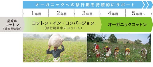 オーガニックへの移行期に栽培されたコットンを使用