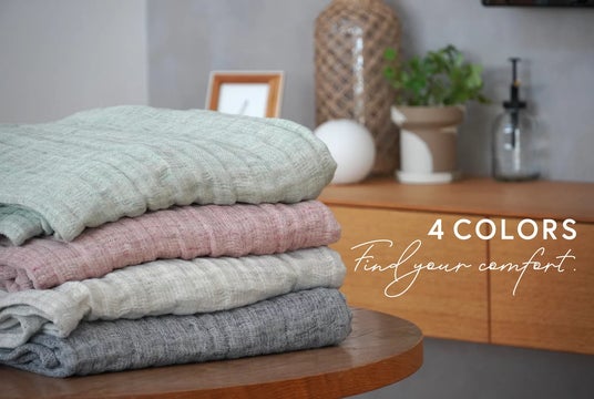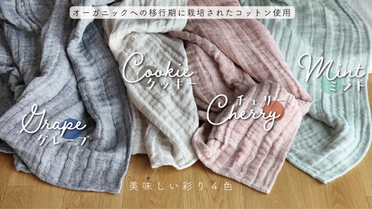 「コットン・イン・コンバージョン」を使用した、『コットンリネンの彩りガーゼケット』(4色展開)