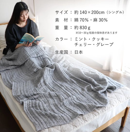 <猛暑対策>『一年の半分』を快適に過ごさせてくれるブランケット「近年長期化する春夏の眠りを少しでも快適に、季節の変化に寄り添う一枚を届けたい」そんな思いから、環境に配慮した素材選びと、日本の地場産業を応援する形で本製品の開発はスタートしました。