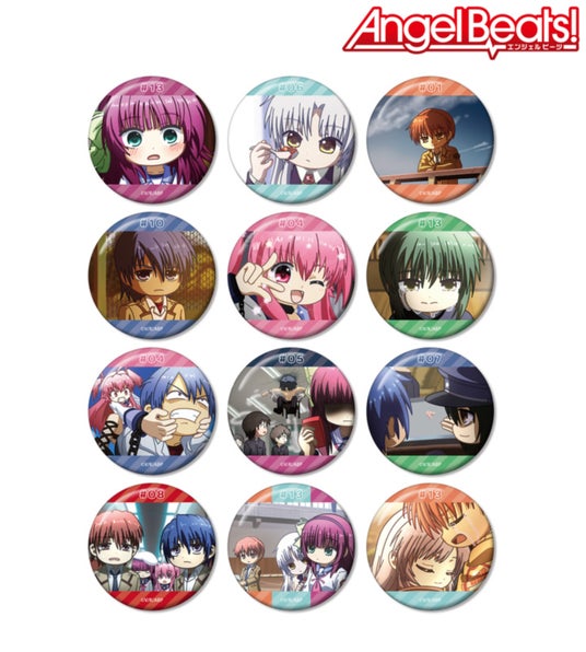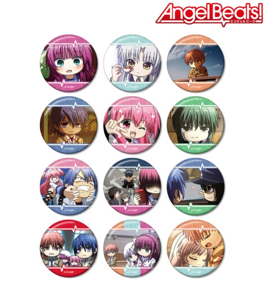 仲村ゆり、立華かなで、音無結弦、日向秀樹、ユイ、直井文人、高松の印象的なシーンをそのままデフォルメで再現し、BIGな缶バッジに仕上げました。
