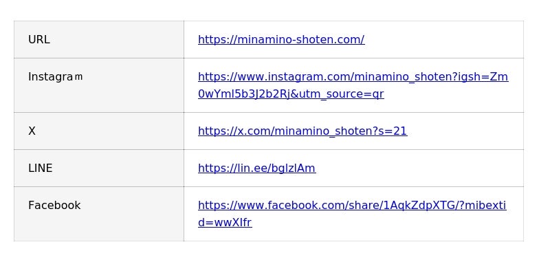 メール:info@minamino-shoten.com