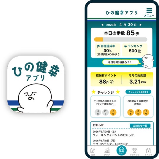 「ひの健幸アプリ」公式HP:https://hino.karada.live/