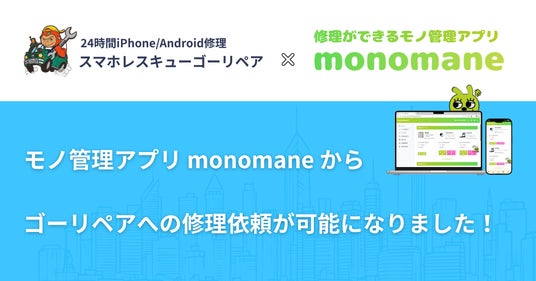 - 提供開始日:2026年4月20日- 提供内容:monomaneからのゴーリペアへの修理依頼(24時間対応・即日対応可)