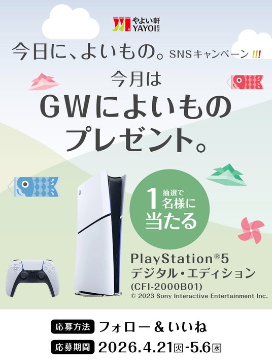 日本国内の「やよい軒」では、やよい軒公式X・公式Instagramにおいて、毎月『今日に、よいもの。』キャンペーンを実施しております。4月と5月は『ゴールデンウィークによいもの』をプレゼント!毎月催事に合わせたプレゼントをご用意しておりますので、ぜひ、この機会にキャンペーンにご参加ください。
