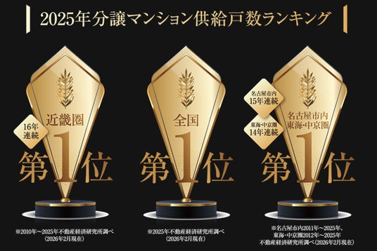 株式会社プレサンスは、主に関西・東海圏を中心に新築マンションの企画・開発・分譲を手がける不動産ディベロッパーです。2025年には、近畿圏で16年連続、名古屋市内で15年連続となる分譲マンション供給戸数ランキング第1位を獲得。さらに、2025年の全国分譲マンション供給戸数ランキングにおいても第1位を獲得し、全国トップの実績を誇ります。